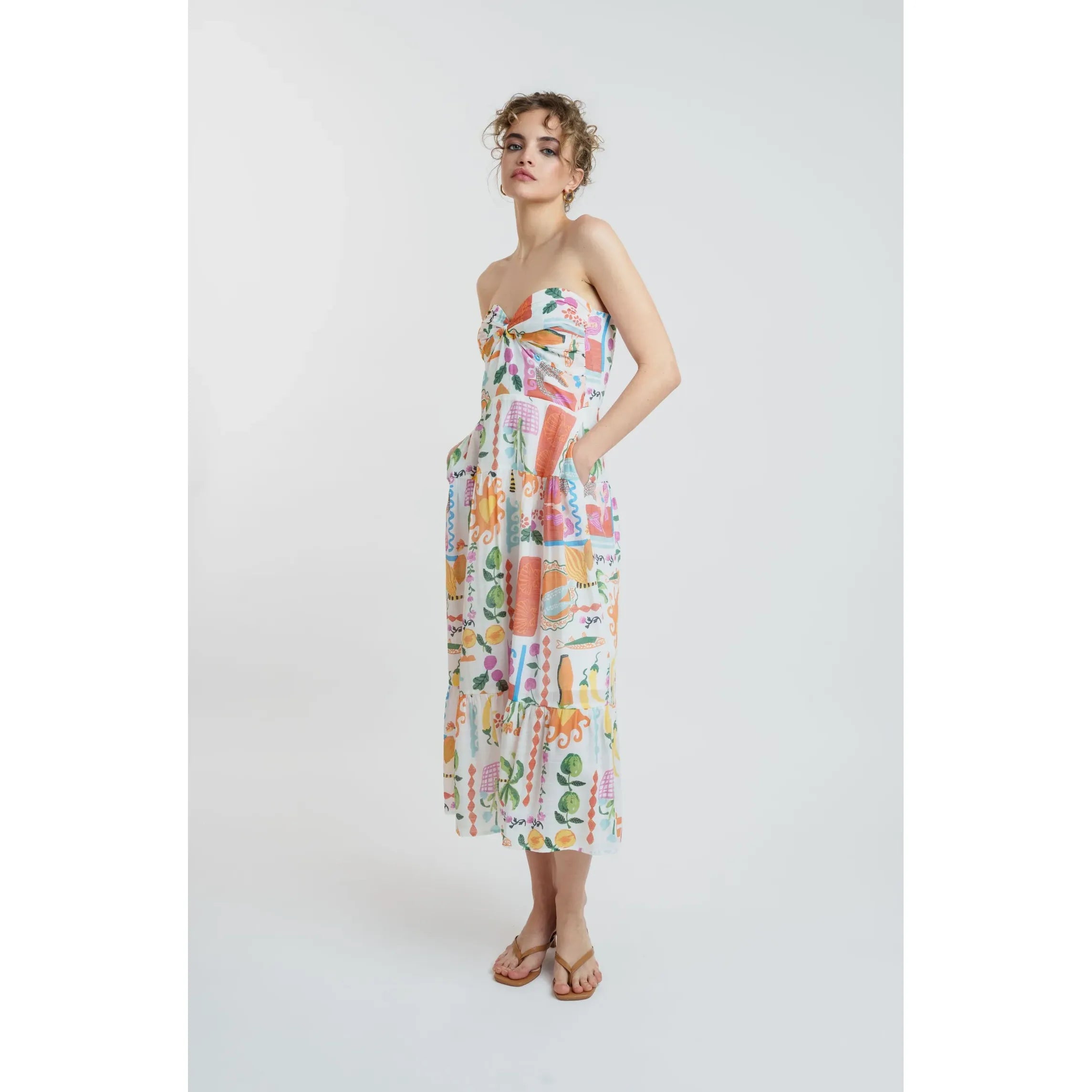Papaya Said So Gauze Strapless Midi Dress