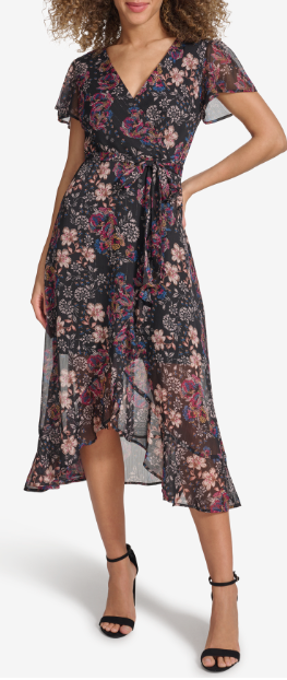 Dress Printed Flutter-Sleeve Midi Navy Multi - Siena