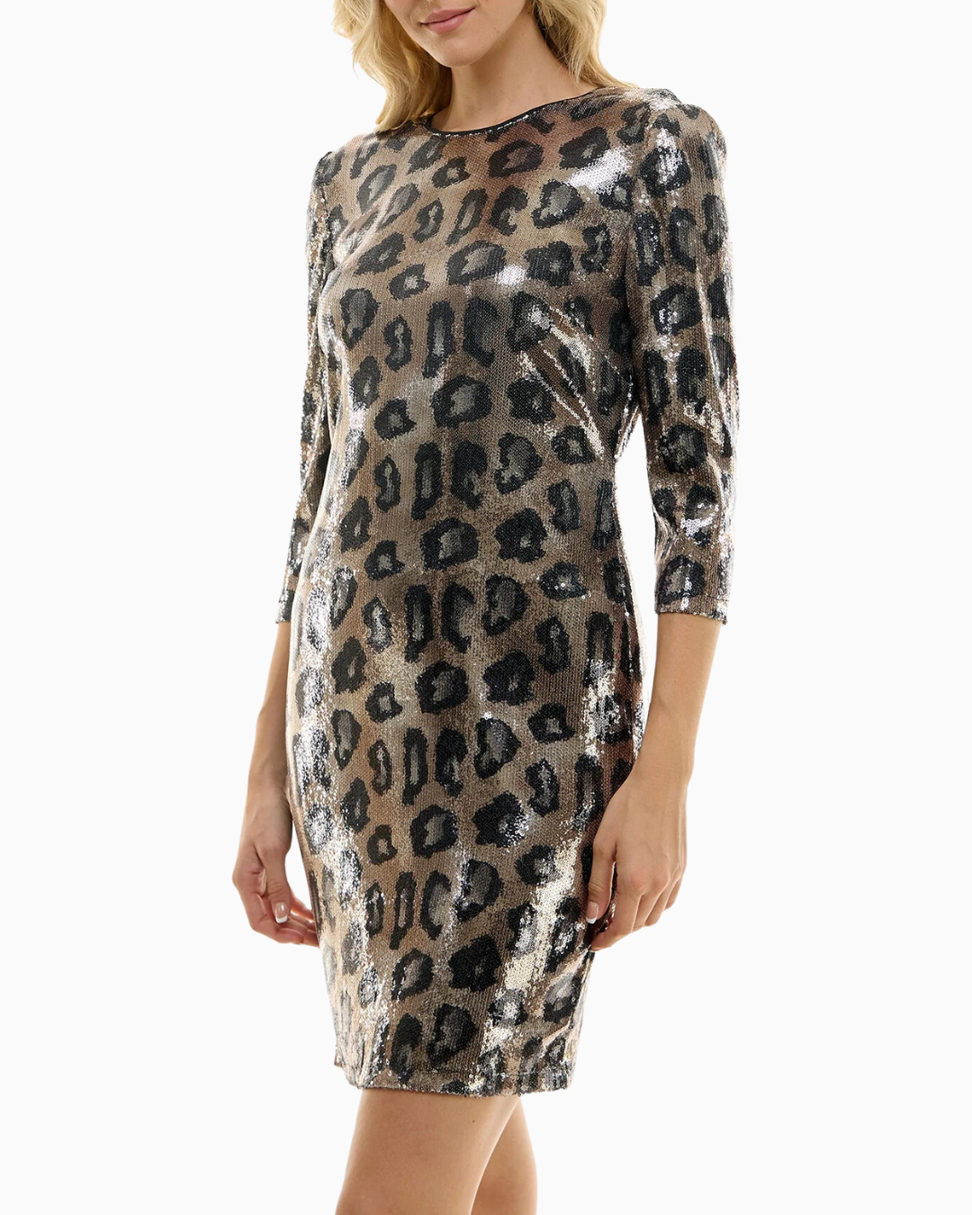 Sequin Sheath Midi Dress Leopard Brown - Nicole Miller