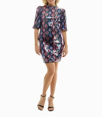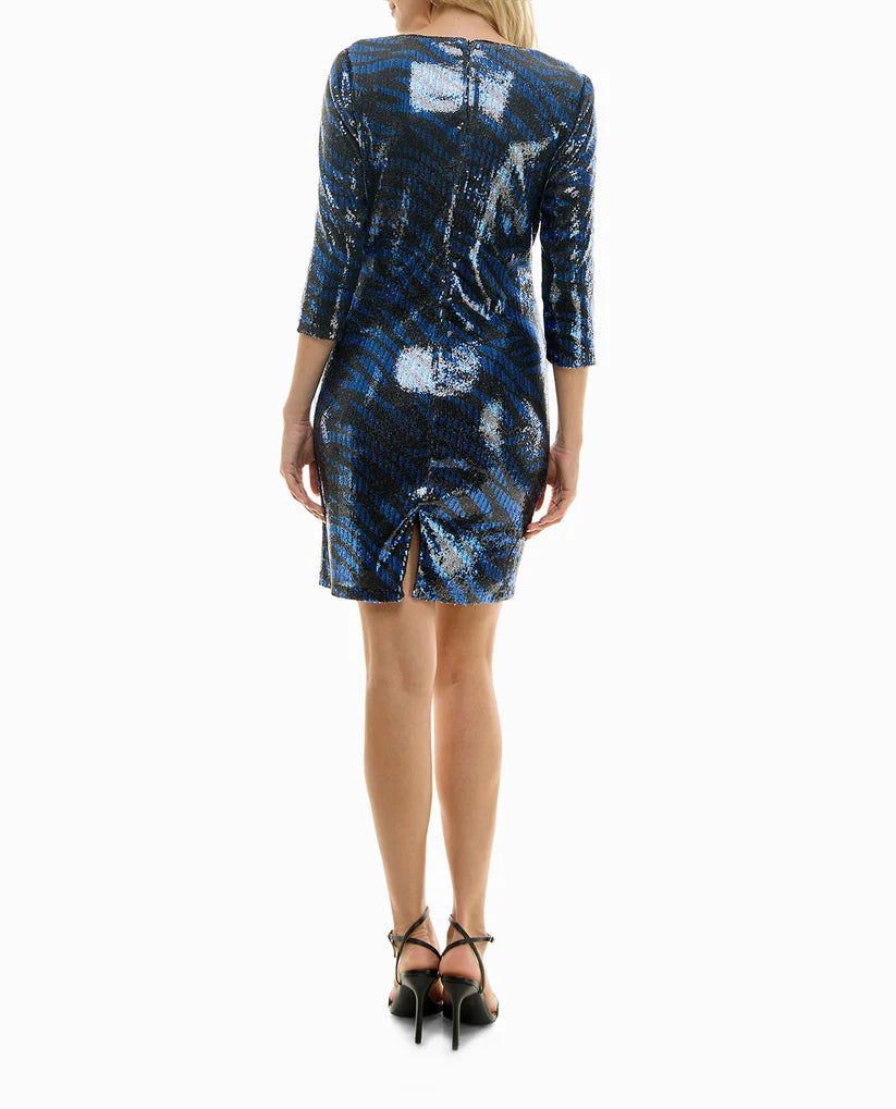 Sequin Sheath Midi Dress Zebra Cobalt - Nicole Miller